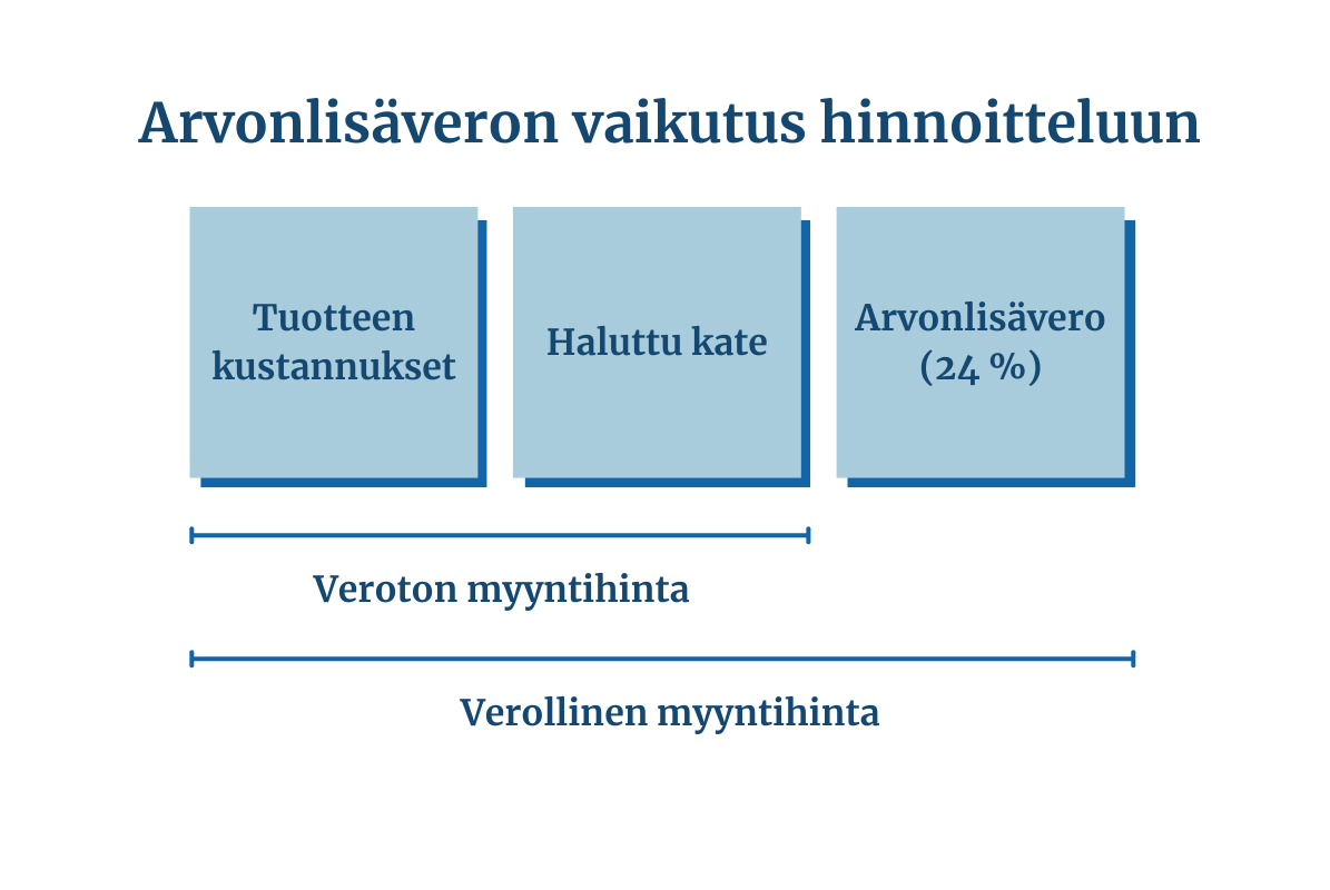 Huom. yleinen arvonlisäverokanta nousee 24 prosentista 25,5 prosenttiin 1.9.2024 alkaen.