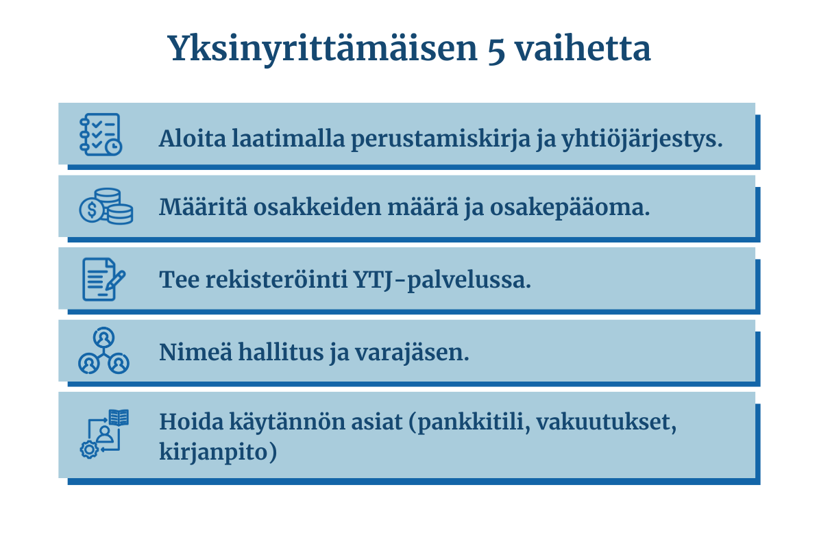 Yhden henkilön osakeyhtiön perustamisen vaiheet