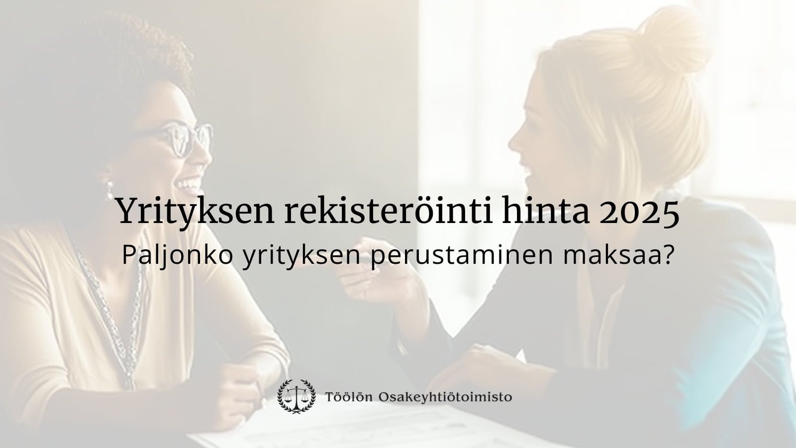 Verkkopalvelussa standardimuotoisella yhtiöjärjestyksellä perustaminen maksaa 280 euroa. Jos haluat tehdä omia muutoksia yhtiöjärjestykseen verkkopalvelussa, yrityksen rekisteröinnin hinta nousee 380 euroon. Sama 380 euron hinta koskee myös paperilomakkeella tehtävää perustamisilmoitusta. Standardimuotoinen yhtiöjärjestys on useimmille yrityksille täysin riittävä, joten kannattaa harkita tarkkaan, tarvitseeko siihen tehdä muutoksia.